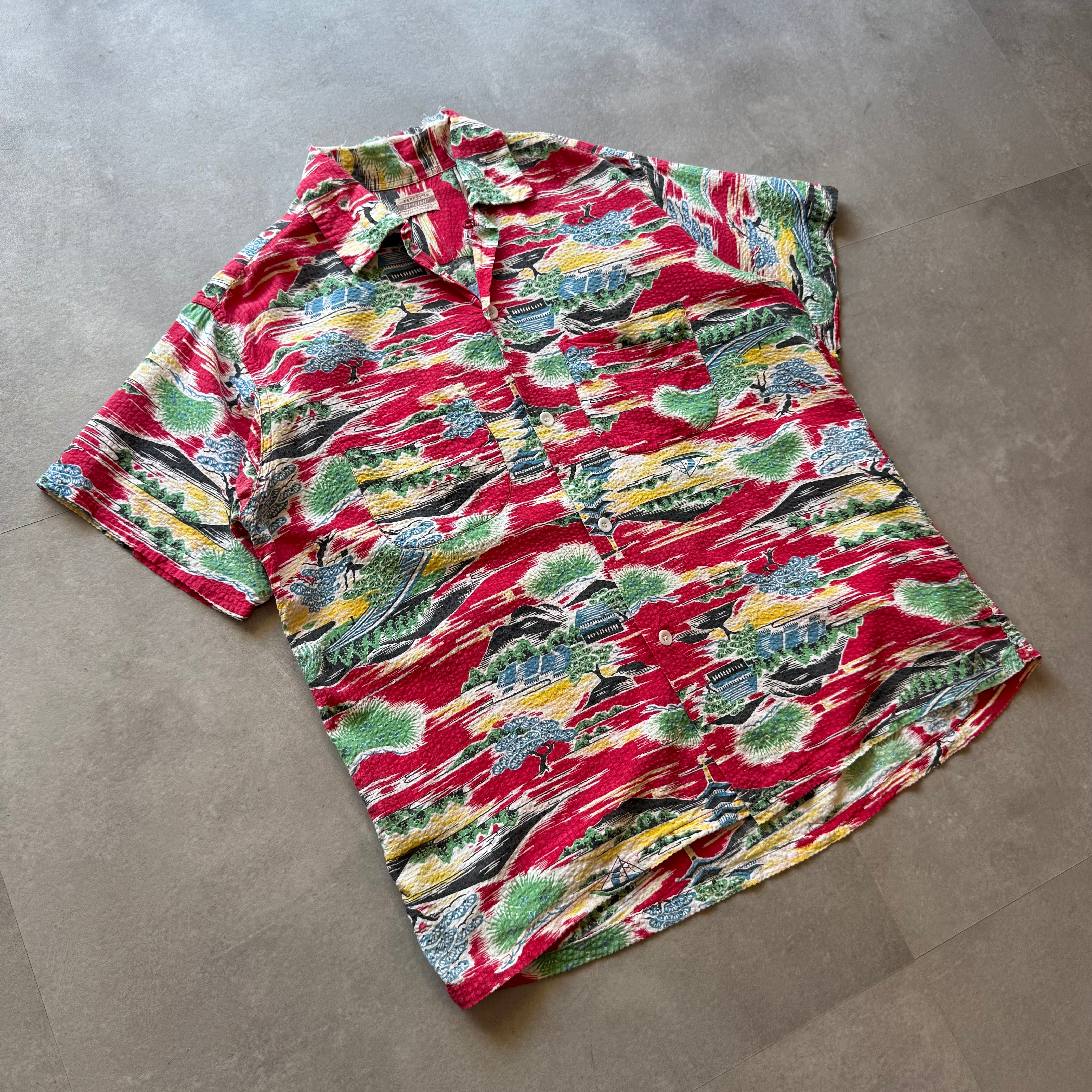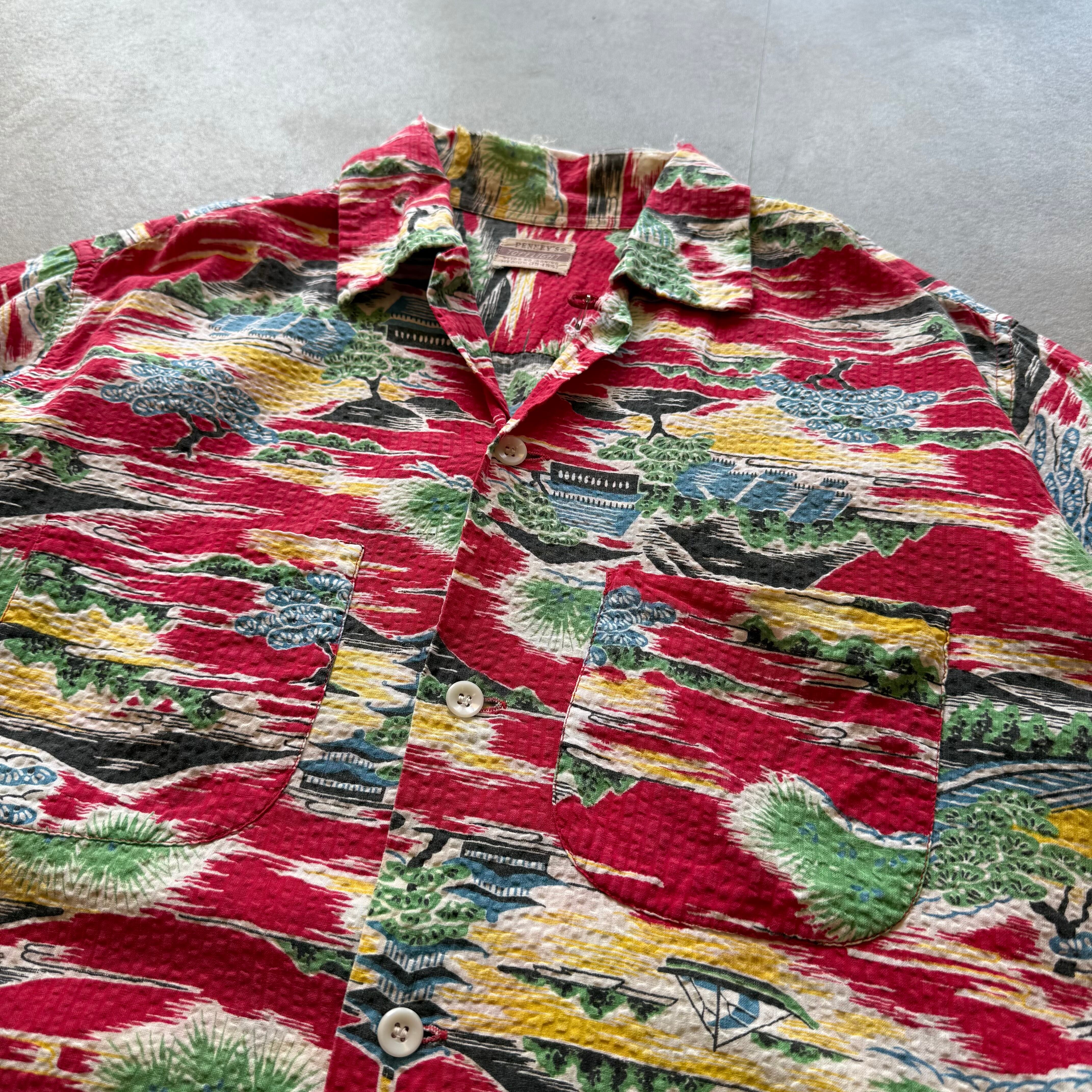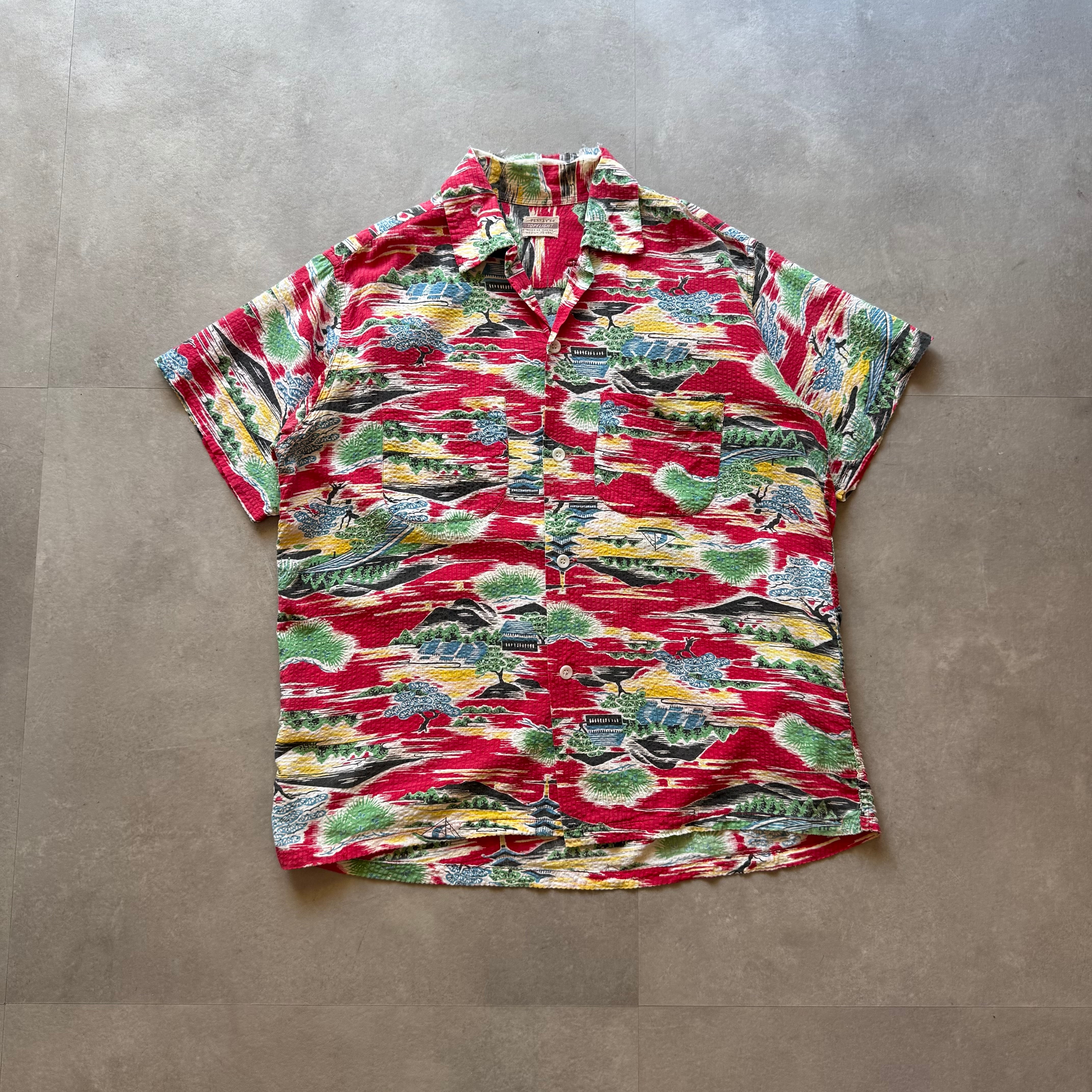 50s vintage PENNEY'S 和柄 SEERSUCKER S/S OPEN COLLAR SHIRT